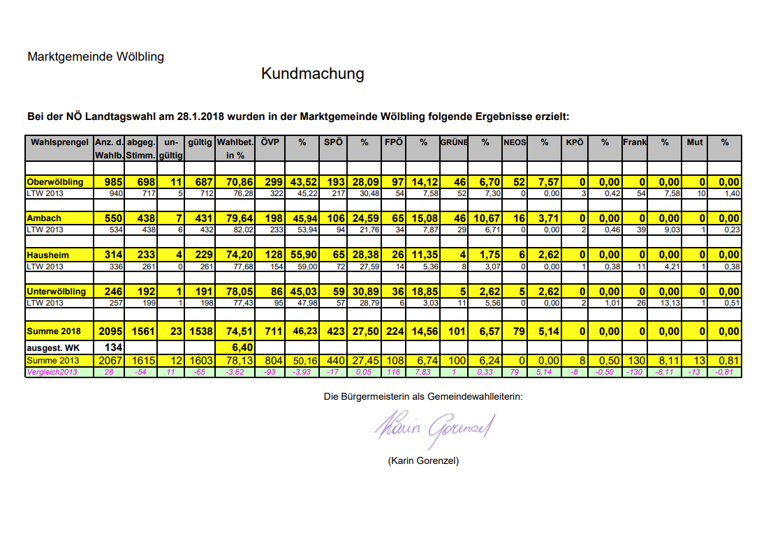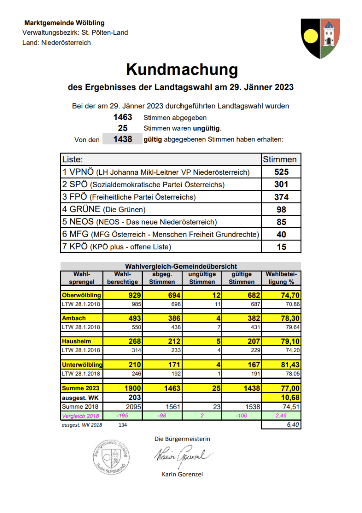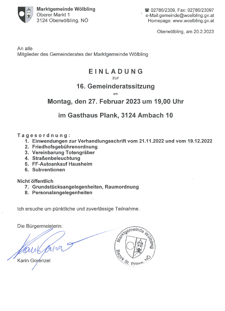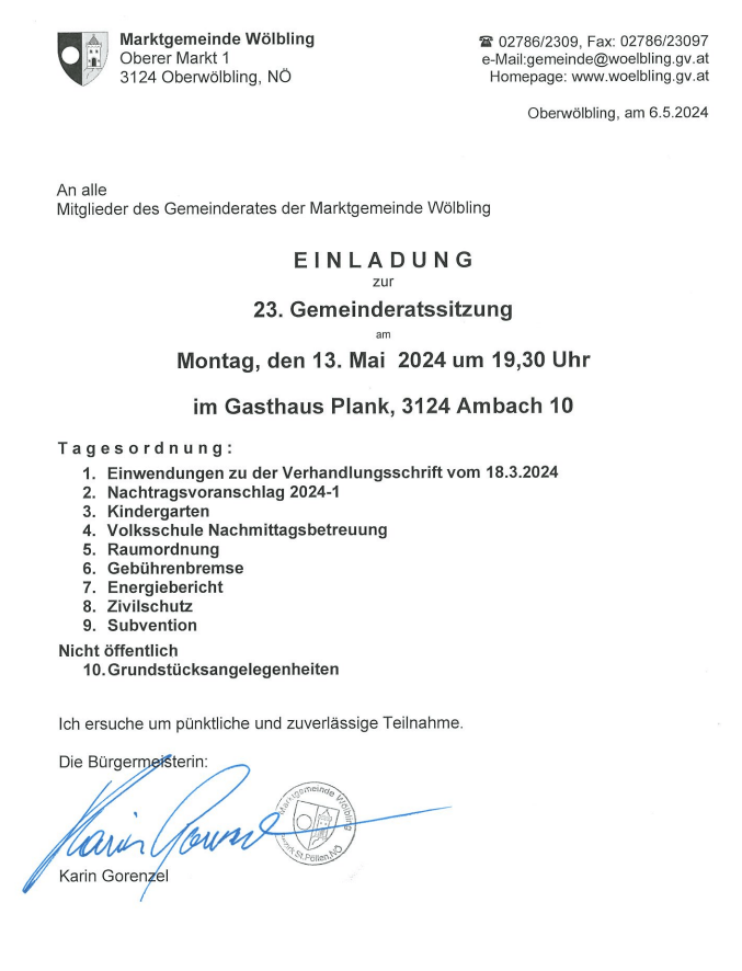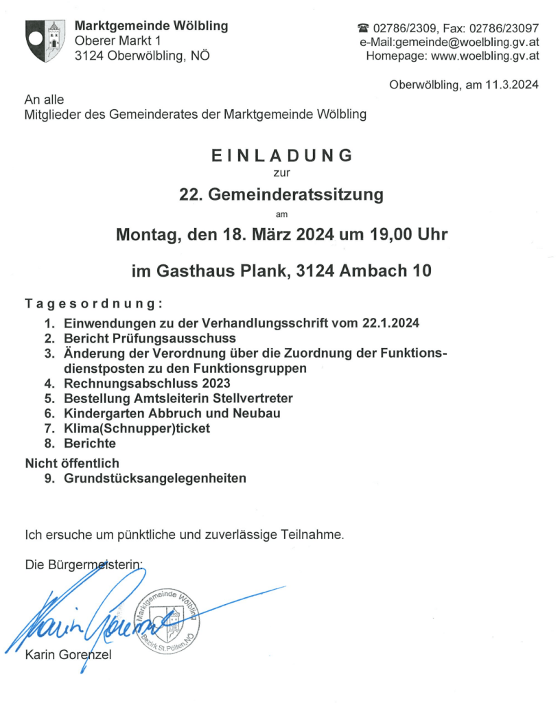 Die Blackoutvorsorge war kurze Zeit lang in Wölbling schwer im Mittelpunkt. Es gab Veranstaltungen dazu mit einer großen Anzahl an Teilnehmern. In der Gemeindezeitung wurde dazu aufgerufen sich Gedanken darüber zu machen und einzubringen. Leider findet im Budget 2023 die Blackoutvorsorge aber keinen Platz.