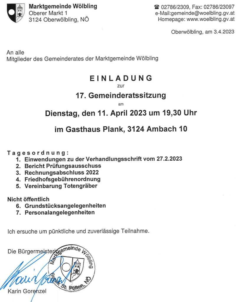 Gemeinderat und Prüfungsausschussvorsitzender der Marktgemeinde Wölbling