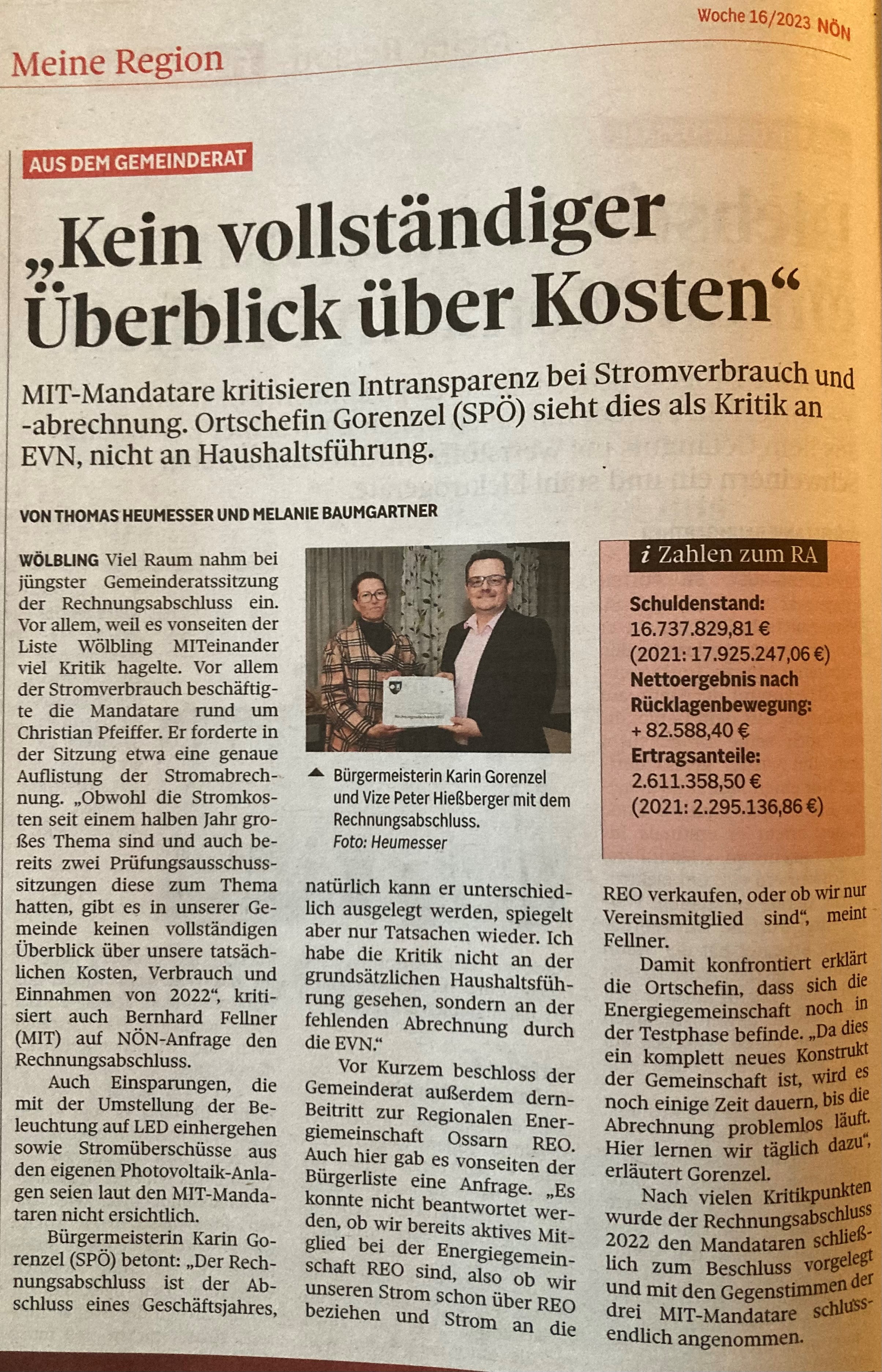 Bericht 17te GR Sitzung – Rechnungsabschluss 2022