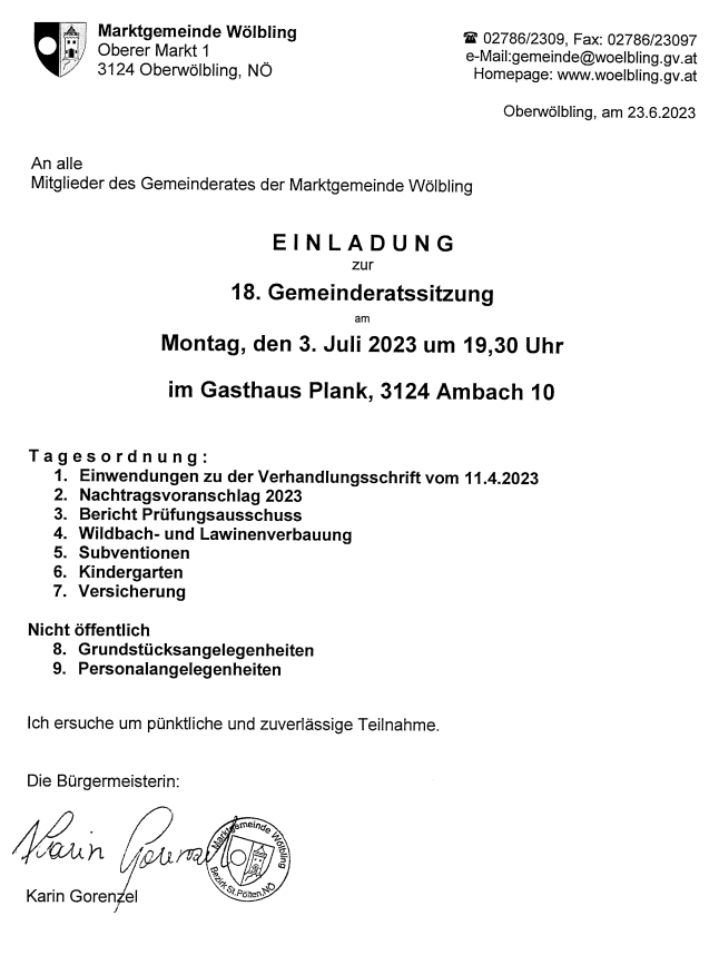 Sehr geehrte Gemeinderätinnen und Gemeinderäte!