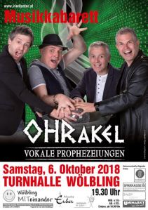Eingebettet in eine geniale Musik- und Lichtshow dürfen sich alle, die zum OHRakel pilgern, freuen und vielleicht sogar die eine oder andere Frage eben diesem stellen. Die Antwort kommt im 4-stimmigen a cappella Sound, von Pop bis Schlager, mit viel Humor und jede Menge Augenzwinkern.